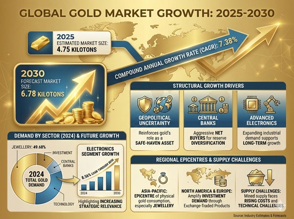 The extension comes at a time when the global gold market continues to demonstrate robust growth. According to Mordor Intelligence, the gold market size is estimated at 4.75 kilotons in 2025 and is forecast to expand to 6.78 kilotons by 2030, representing a compound annual growth rate (CAGR) of 7.38% over the period.