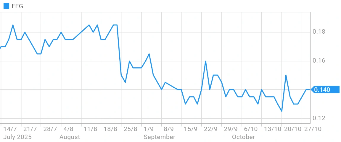 Far East Gold (ASX: FEQ) trades at approximately A$0.140 per share as of 5th November 2025. The company has a market capitalisation of A$49.54 million with a 52-week range of A$0.110 – A$0.205.