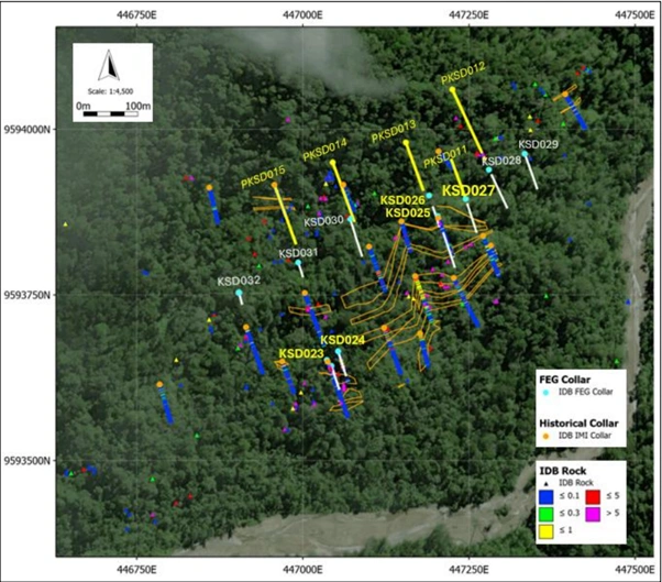 Far East Gold Limited (ASX: FEG) has delivered another exceptional drill result from its Sua Prospect at the Idenburg Gold Project in Papua, Indonesia. The Company announced assays from diamond drillhole KSD027, marking the fifth consecutive hole to return high-grade and bonanza-grade gold intervals.