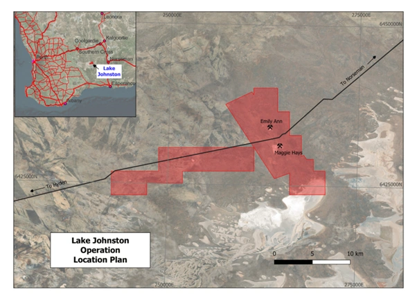 The Lake Johnston Project sits approximately 190 kilometres southwest of Kalgoorlie in Western Australia’s goldfields region. The site contains two historical underground nickel sulphide mines, Emily Ann and Maggie Hays.