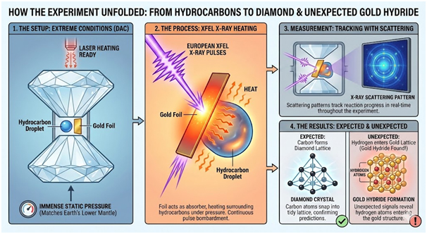 The original research aimed to study how hydrocarbons transform into diamond under crushing pressure and intense heat. Researchers positioned tiny hydrocarbon droplets between diamond anvil cell tips. This device traps samples at immense static pressures whilst allowing laser heating. The European XFEL facility in Germany supplied powerful X-ray pulses to the thin gold foil.