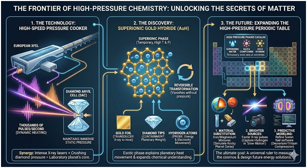 Gold hydride joins a catalogue of exotic phases including superionic water and silica compounds. These phases appear only when atoms undergo compression and heating together. Most vanish once pressure or temperature drops, yet their existence explains planetary heat movement. The study expands scientific understanding of chemical behaviour at conditions once considered purely theoretical.