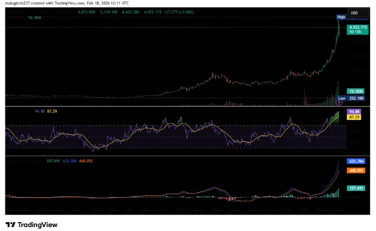 Historical closing data for XAU/AUD showed short-term volatility. On 18 February 2026, the daily close stood at AUD 6,948.52 per ounce. On 11 February 2026, the close reached AUD 7,133.30.