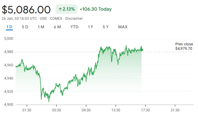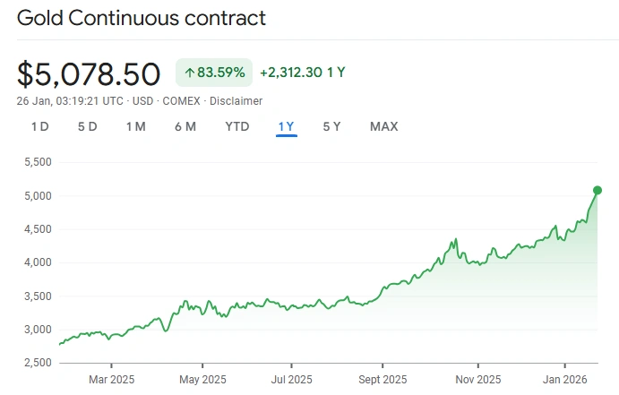 Gold prices reached a milestone on 24 January 2026. The metal crossed the $5,000 per ounce threshold during trading. This event represents a peak in the commodity markets. Investors reacted to shifting global conditions by moving capital into bullion.