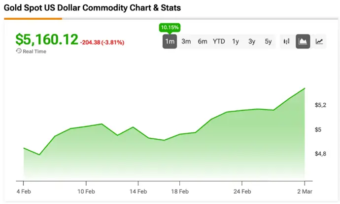 Figure 2: Gold price chart showing strong gains amid rising geopolitical tensions and economic uncertainty [TipRanks]
