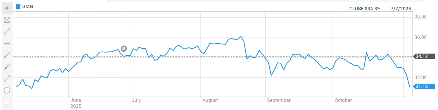 Goodman Group trades at AUD 31.160 per share with a 52-week range of AUD 25.010 to AUD 39.430. Average daily volume is 2,837,543 shares.