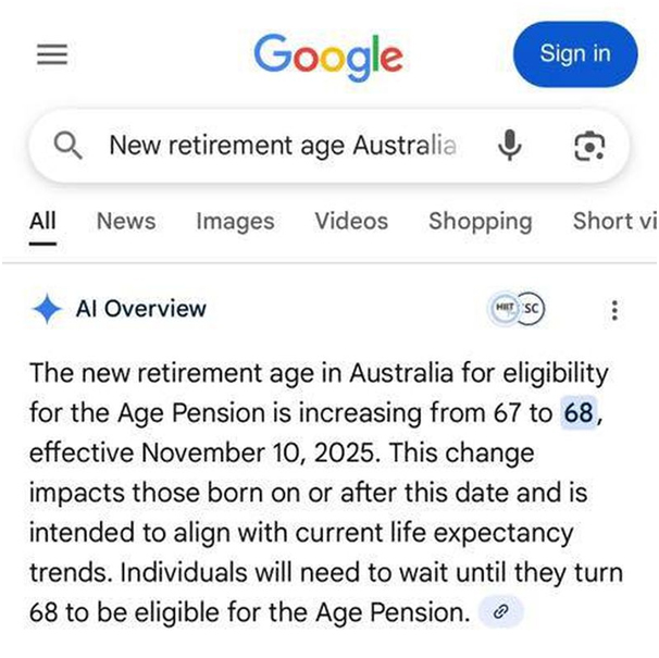 A false claim that Australia’s pension age is rising has spread widely online this month. The misinformation said the pension age would rise to 68 starting November 10, 2025. This claim targeted people born on or after November 10, 1958. It originated from a website named HIIT5158.com.au and gained traction on social media. Google AI replicated and amplified this false information in its search overview results, causing further confusion.