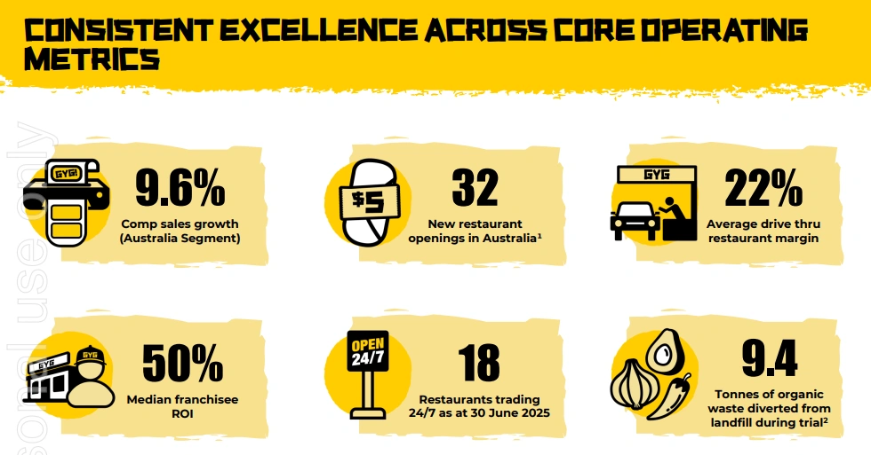 The company’s growth strategy remains focused on disciplined expansion across multiple markets. GYG plans to open 31 new restaurants in Australia in the 2025 financial year, scaling to 40 annually within the next five years. This represents a significant acceleration from historical opening rates and positions the business to capture market share in the competitive quick service restaurant sector.