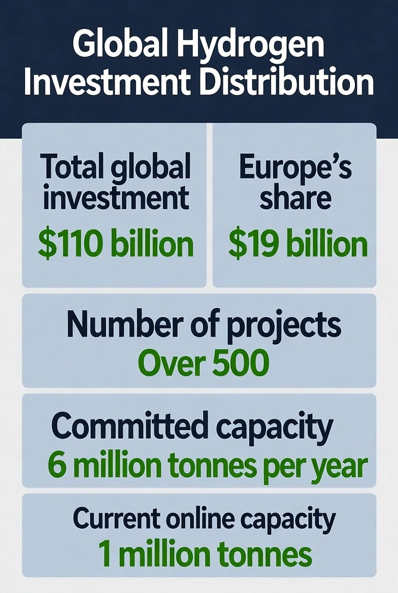 The hydrogen sector now has its first mature clean projects operating worldwide, backed by about US$110 billion in investment across over 500 projects in various stages. These projects account for over 6 million tonnes per year of committed capacity, with 1 million tonnes already online. By 2030, global supply could grow by an additional 3 to 8 million tonnes.