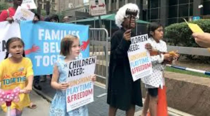 Protesters seek responsibility after news of child detention in ICE. [ABC News]