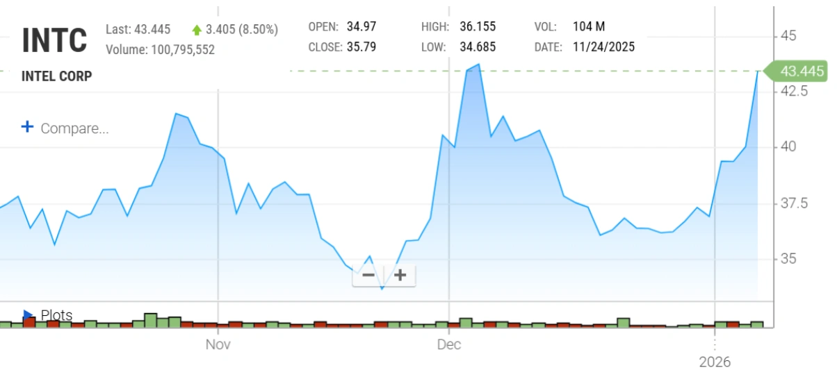 Q: Why did Intel stock jump 8%?
