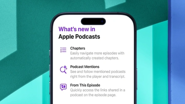 Apple Podcasts gains automatically generated chapters for English-language shows when creators do not provide them. Timed links now appear during episodes as well. When hosts mention other podcasts or resources, those links show up at the right moment.