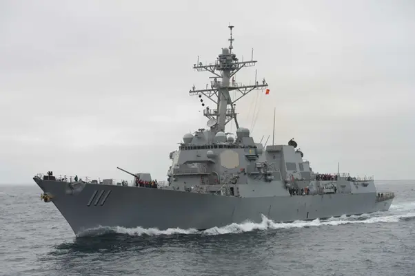 USS Spruance conducts a maritime interception operation in the Strait of Hormuz during enforcement of the US naval blockade. [DVIDS]