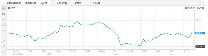 Figure 6: James Hardie (ASX:JHX) three-month share price performance