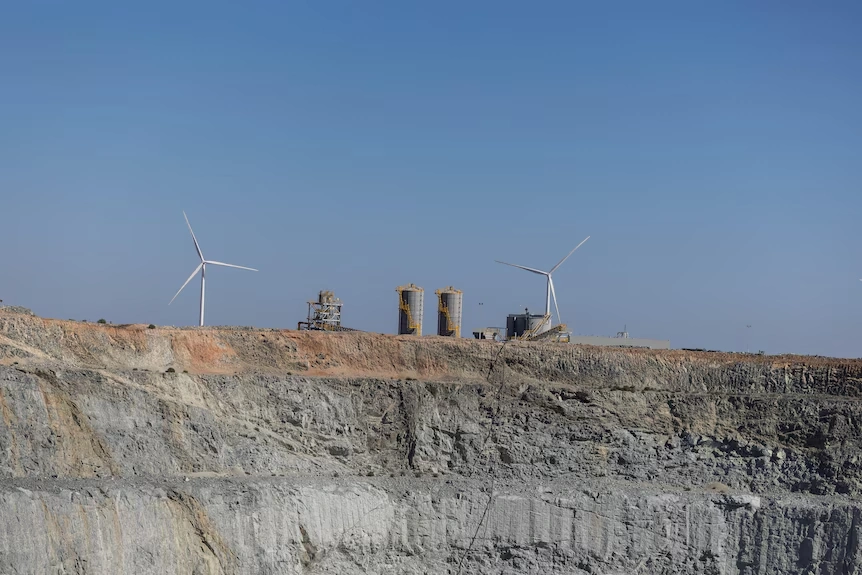 The Kathleen Valley mine is 80 per cent powered by renewables, including wind turbines