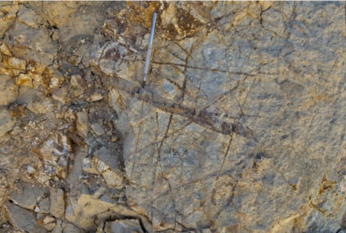 Figure 2: Early quartz diorite porphyry with strong A veining exposed along the road to drill pad number three at El Perdido [Courtesy: Kobrea Exploration Corp]
