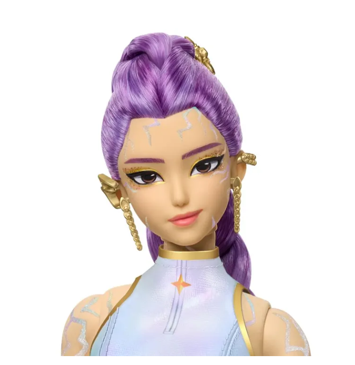 Close-up of Rumi doll from “KPop Demon Hunters” HUNTR/X “What It Sounds Like” Fashion Doll 3-Pack