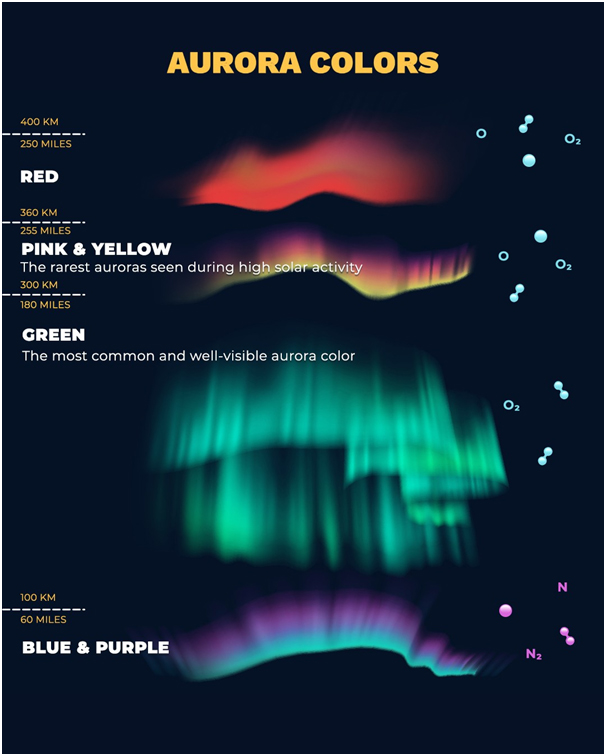 Auroras are caused by particles from a geomagnetic storm interacting with the Earth’s magnetic field
