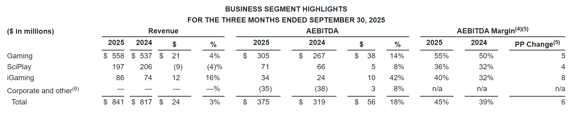 Light & Wonder’s ability to expand margins while growing revenue demonstrates operational excellence. Consolidated AEBITDA increased 18% to $375 million, with margins reaching 44.6%.