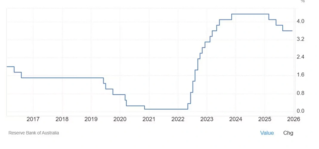 - The Reserve Bank of Australia cash rate remains at 3.60%.