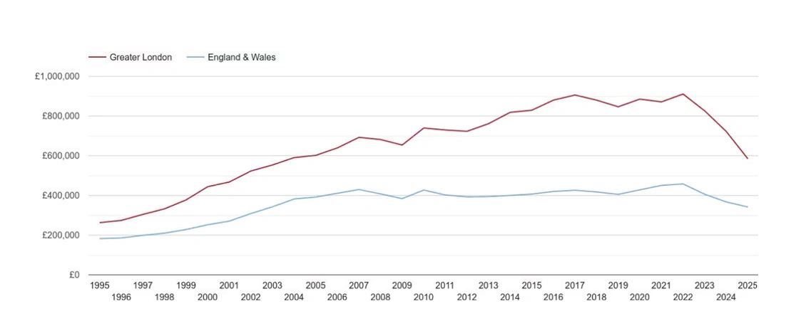 London house prices fell by 2.4% during 2025. Some wealthy districts experienced even sharper declines. Kensington and Chelsea recorded a massive drop of 16.5%. Prices in the City of London plummeted by 18%.