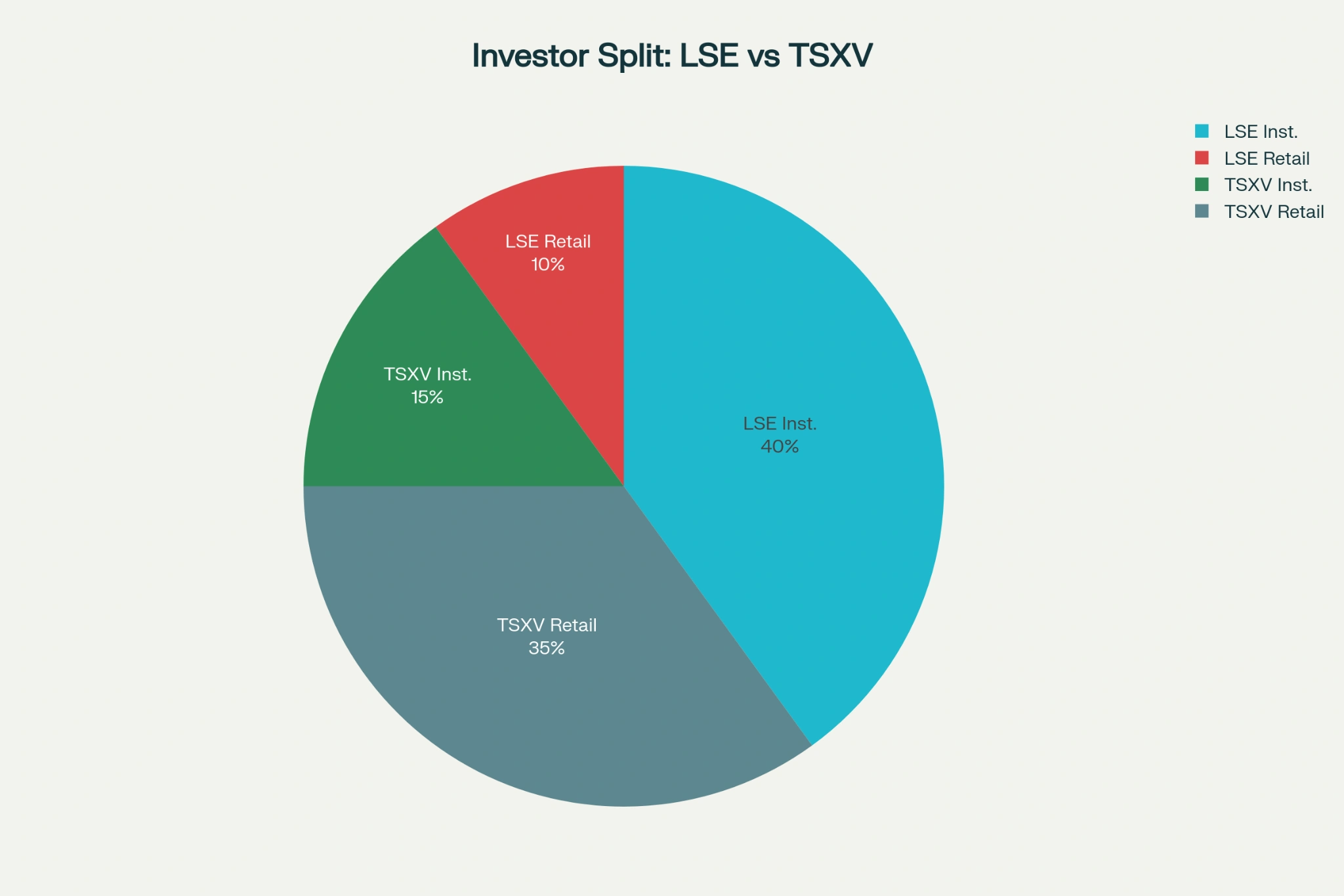 Institutional investors dominate the London market. Large asset managers favour companies with advanced feasibility studies and near-term production. The LSE environment promotes long-term growth strategies with stable shareholder bases. In Canada, institutional presence is smaller, with retail investors and mining-focused funds shaping capital allocation. This structure enables Canadian juniors to finance exploration drilling, geophysical surveys, and resource definition.