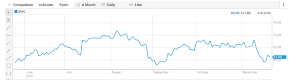 The Macquarie Technology share price closed at AUD 61.51 per share on the most recent trading day. The stock has traded in a 52-week range of AUD 52.66 to AUD 91.39 per share, with current market capitalisation standing at approximately AUD 1.59 billion.
