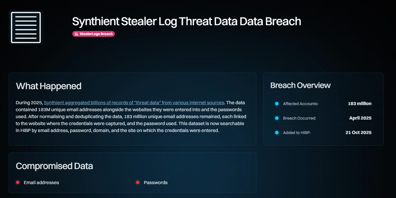 Breached credentials appeared almost instantly across criminal marketplaces and underground channels, indicating a rapid movement into cybercrime networks. The magnitude of this event places users at heightened risk for credential-stuffing attacks and identity theft, especially where passwords overlap between platforms. Many analysts describe this as one of the largest credential leaks in history, citing the scale and real-time exposure. The dataset added to Have I Been Pwned on 21 October 2025 enables individuals and companies to check if their accounts appear in breach logs.​