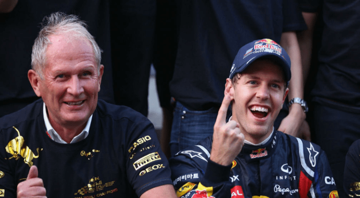 Figure 1: Helmut Marko alongside Sebastian Vettel during Red Bull Racing’s championship era, highlighting the adviser’s role in shaping multiple world champions