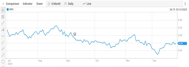 Figure 3: Six-month daily share price performance of Medibank Private (ASX: MPL)