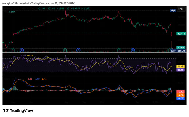 Microsoft’s share price dropped by double digits, wiping out hundreds of billions in market value in one session. (Source: TradingView)