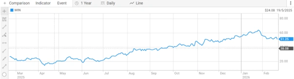 Mineral Resources Limited (ASX: MIN) is trading at $52.130 per share, giving the Company a market capitalisation of $10.68 billion. The stock has moved within a 52-week range of $14.050 to $65.790, reflecting a strong recovery following the turnaround delivered in the FY26 half-year results.