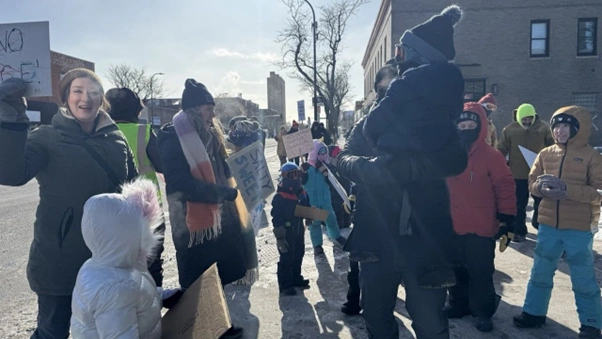 Figure 3: Families and children participate in the Minneapolis protests 2026, demonstrating broad community involvement despite extreme cold conditions. [WSWS]