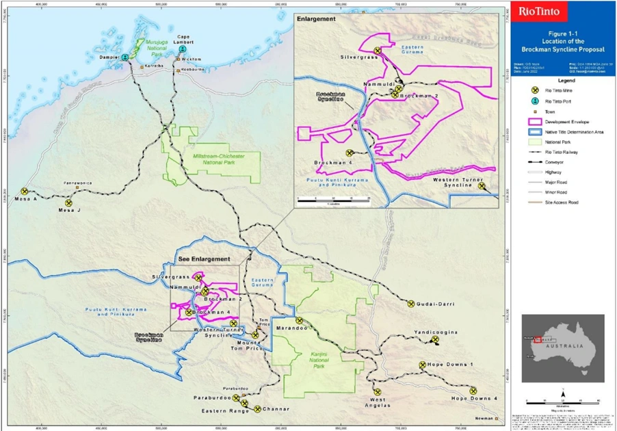 Location of Rio Tinto’s Brockman Mine Hub in Western Australia’s Pilbara region