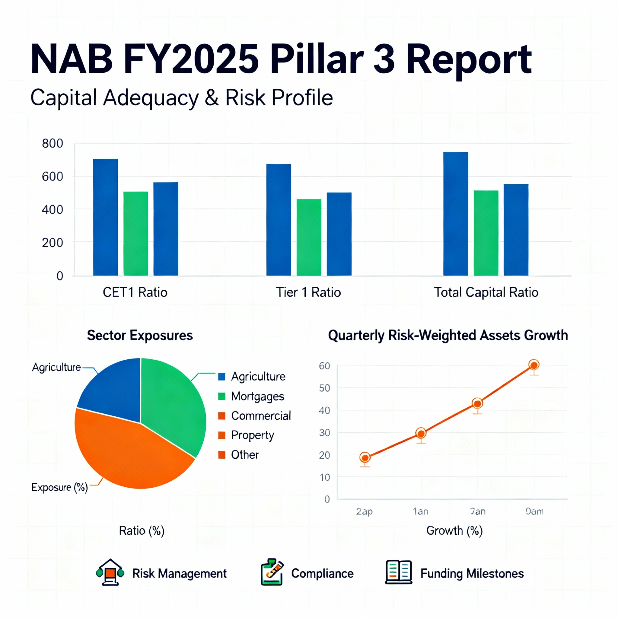 National Australia Bank (NAB) has issued its FY2025 Pillar 3 Report, presenting key data on capital adequacy, risk exposure, and balance sheet stability. The bank continues to reinforce its commitment to transparency and robust risk management as it navigates an evolving financial landscape.