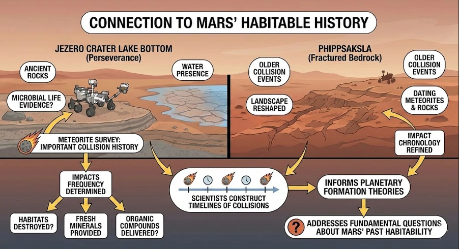 Phippsaksla rests on fractured bedrock outside Jezero crater’s main basin. The rock’s location records older collision events, reshaping that landscape. Dating the meteorite and analysing the surrounding rocks refines the impact chronology. Scientists construct timelines showing when collisions struck Mars’ surface. Understanding impact frequency informs theories about planetary formation. This knowledge directly addresses fundamental questions about Mars’ past habitability.