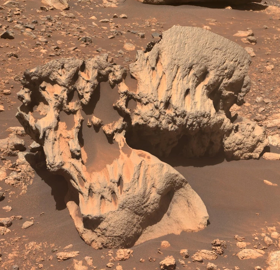 Phippsaksla measures approximately 80 centimetres across or about 31 inches wide. The boulder rises above the surrounding terrain like a small statue. Low, flat, fractured bedrock carpets the landscape beneath it. Images reveal a pale orange rock pitted with deep cavities. Dark sand fills many of these surface indentations. The rock’s distinctive appearance immediately caught the team’s attention. Scientists noticed it looked fundamentally different from native Martian stones.