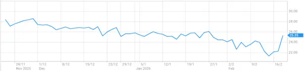 - Last price: $25.35