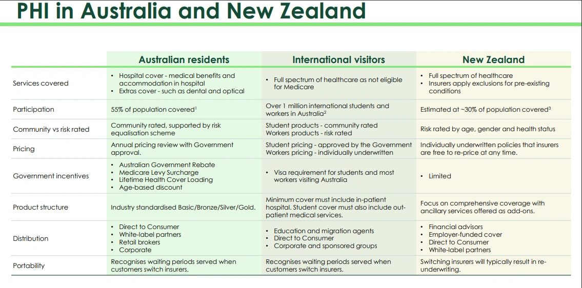 Figure 2: Comparison of private health insurance (PHI) markets across Australia and New Zealand.