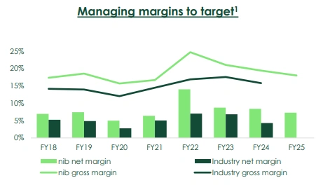 Figure 3: nib’s net and gross margins have consistently outperformed industry margins.