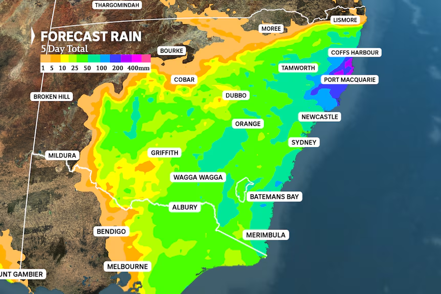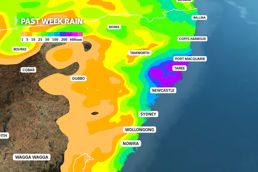 By Friday, the rain should move further down the coast, bringing moderate falls to the NSW South Coast, and sunshine is forecast to return to the sodden Mid North Coast and Upper Hunter catchments by the weekend.