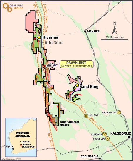 Figure 1: Location map showing Riverina Underground, Little Gem and Davyhurst processing hub