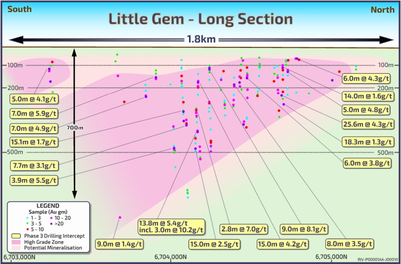 Managing Director Luke Creagh commented: “The latest drilling continues to expand the Little Gem mineralisation system with wide, high-grade intercepts at good predictability across a large area.”