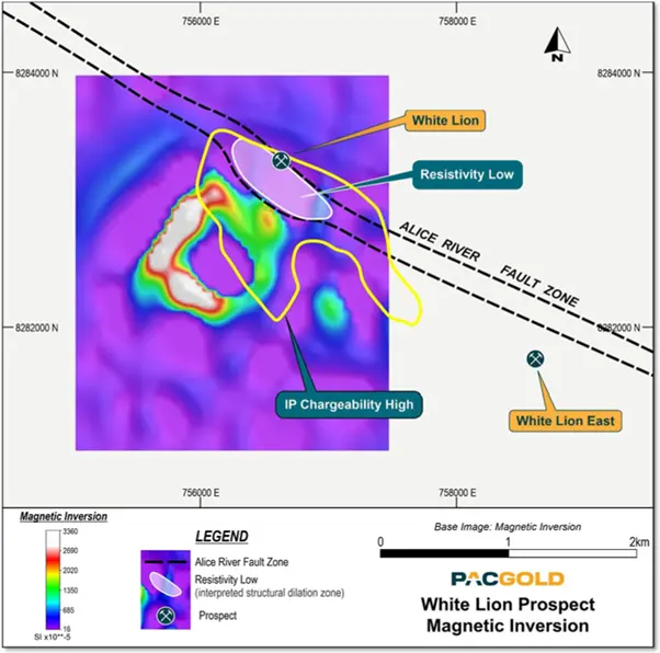 White Lion is not an isolated target. The broader Alice River Project spans 377km² across 30km of strike along the ARFZ. Pacgold’s regional gradient array IP program is now in progress, aiming to connect White Lion with its Victoria Prospect located northwest along the same structure.