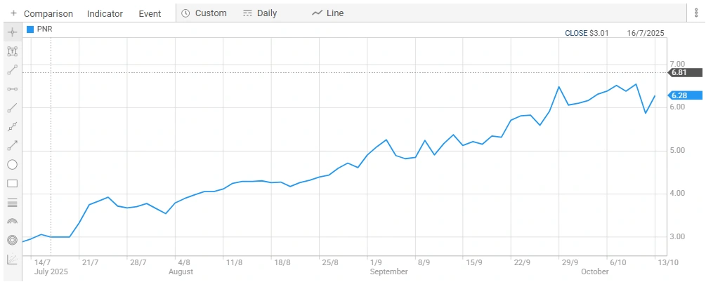 On 13 October 2025, Pantoro Gold shares increased by 6.98%, with a market capitalisation of approximately $2.31 billion. The stock has been ranging between $4.85 and $6.40 in the last 52 weeks as the investors have regained confidence as the company continued to make updates on production and also achieved success in its exploration.