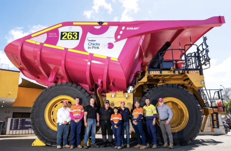 The campaign was launched by Schlam in collaboration with Liebherr-Australia, Hancock Prospecting, and healthcare partners such as Mater’s “Chicks in Pink” program.