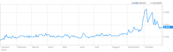 - Last Price (as of 1:41 pm 03 Nov 2025 AEDT): $0.029 (+7.41 %)