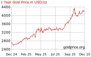 Figure 4: Rise of the price of gold in the last 1 year [Goldprice]