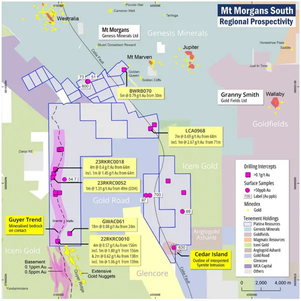 Platina’s Managing Director, Mr Corey Nolan, emphasised the attraction of the strategic location. He stated: “Mt Morgans South is nestled between world-class deposits to the north and northeast, and adjacent to Iceni Gold’s Gold Road joint venture to the southwest.”