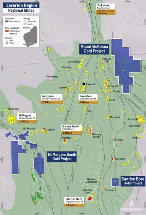 Gold is currently trading above $7,000 AUD per ounce, bolstering the commercial case for exploration across Western Australia’s Eastern Goldfields. The Laverton Gold District, home to Mt McKenna, has produced more than 28 million ounces of gold and hosts tier-one operations including Sunrise Dam, Wallaby, and Granny Smith.